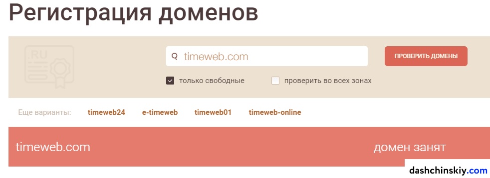 Пример проверки домена (https://timeweb.com/):