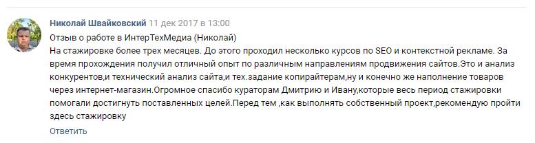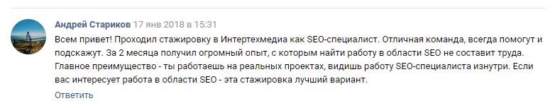 Всем привет! Проходил стажировку в «ИнтерТехМедиа» как SEO-специалист. Отличная команда, всегда помогут и подскажут. За 2 месяца получил огромный опыт, с которым найти работу в области SEO не составит труда.
