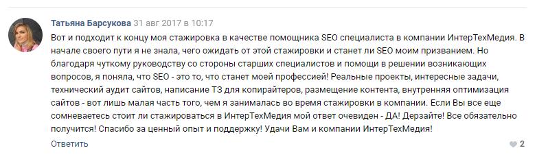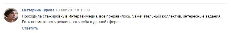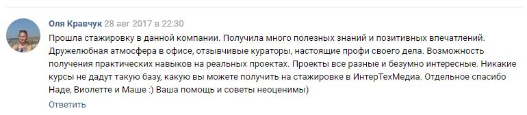 Проходила стажировку в «ИнтерТехМедиа» после окончания курсов по seo. После курсов необходимо было набраться практического опыта.