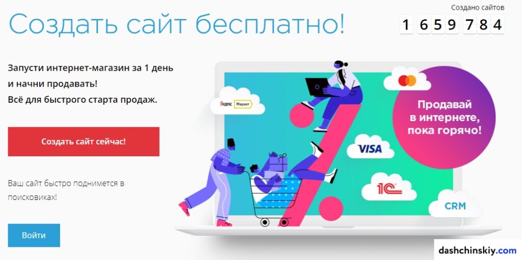 Тоже удобный и простой конструктор сайтов, можно создать начиная от простого сайта до интернет-магазина.